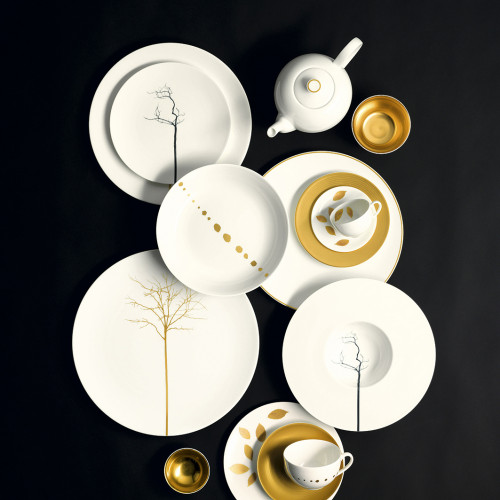 Das Solid Color ist in 41 verschiedenen Farben erhältlich und zeichnet sich durch eine etwas dickere Beschaffenheit im Vergleich zum Fine Bone China aus. Es ist ebenfalls in zahlreichen Varianten verfügbar, wobei es dünner und filigraner gearbeitet ist. Das gesamte Porzellan wird aufwändig in Handarbeit gefertigt. Selbstverständlich werden alle Teller mit Dekoren per Hand veredelt und kunstvoll verziert.